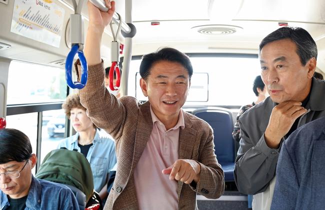 김동근 의정부시장이 6월 3일 출근 시간대에 의정부01번 공공버스에 탑승해 시민들의 목소리를 청취했다.
