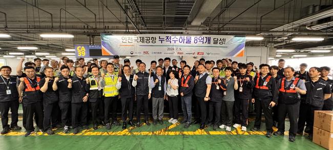 인천국제공항공사(사장 이학재)는 지난 9일 오후 인천공항 수하물 조업지역에서 누적 수하물 8억 개 달성을 기념하는 행사를 개최했다고 10일 밝혔다.