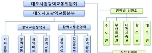 대광위는 광역교통정책 심의·의결을 위한 위원회와 위원회의 업무지원 및 실질적인 광역교통정책·사업 집행을 위한 사무기구인 광역교통본부로 이루어진다.