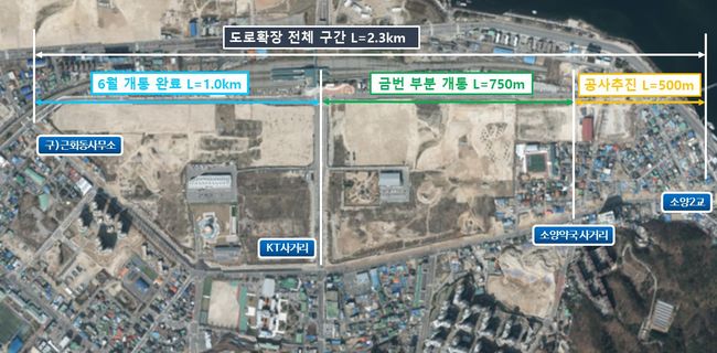 이에 앞서 시는 지난 6월 (구)근화동사무소~KT사거리 1km 구간의 부분 개통을 성공적으로 마친 바 있다.