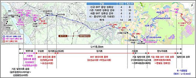 특히, 공주시 신월초 교차로에서 세종시 구간은 BRT 전용도로로 설치되어 버스의 통행속도와 정시성을 크게 향상시키고, 이용자들에게 보다 안정적이고 편리한 교통 서비스를 제공할 계획이다.
