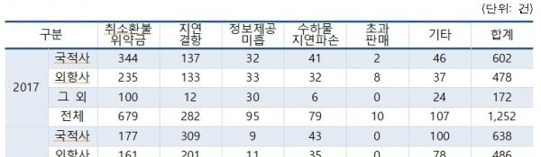 취소·환불위약금 관련 피해가 전년 대비 120건 감소하면서 ‘항공교통이용자 보호기준’ 효과가 나타난 것으로 보이나, 지연·결항 관련 피해는 전년 대비 200건 이상 증가해 전체 피해구제 접수 건수는 증가했다.