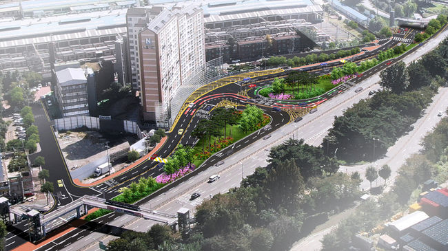 구로구가 지난 5월 남부순환로 구로IC 진입 구간의 도로구조 개선공사를 착공했다.