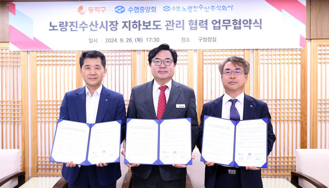 구는 지난 26일 동작구청에서 수협중앙회, 수협노량진수산와 ‘노량진수산시장 지하보도 관리 협력을 위한 업무협약(MOU)’을 체결했다며 이같이 전했다.