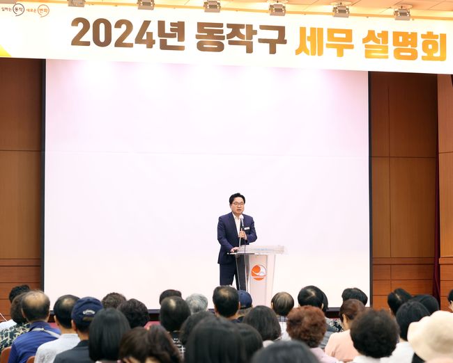 박일하 동작구청장이 지난 6월 개최된 `2024년 제1차 동작구 세무설명회`에 참석해 인사말을 하고 있다. 특히, 이번 설명회는 일상생활과 밀접한 각종 세무 관련 정보뿐만 아니라 재개발지역이 많은 구 특성을 고려해 재개발·재건축 권리분석에 대한 분야까지 확대함으로써 구민의 만족도를 높인다는 방침이다.
