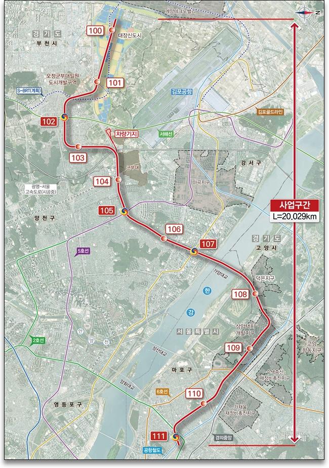 대장∼홍대선은 부천 대장지구와 고양 덕은지구, 서울 홍대입구역까지 20km를 운행하며, 총 27분이 소요된다. 환승역사는 원종역(서해선), 화곡역(5호선), 가양역(9호선), 홍대입구역(2호선, 공항철도, 경의중앙선) 총 4개소이다.