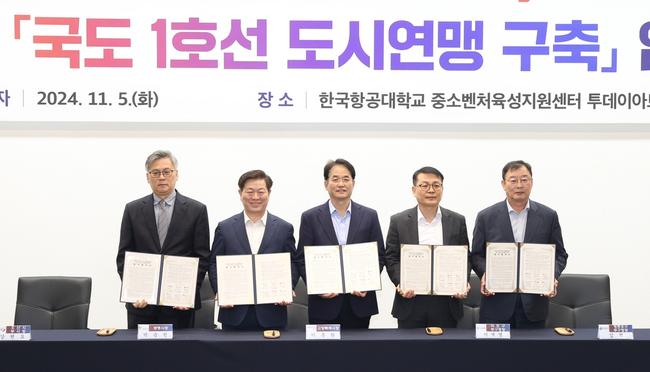 시는 5일 오후 1시 고양시 소재 한국항공대학교 중소벤처육성지원센터에서 `지속 가능한 도시 발전을 위한 국도1호선 도시연맹 구축 업무협약`을 체결했다.