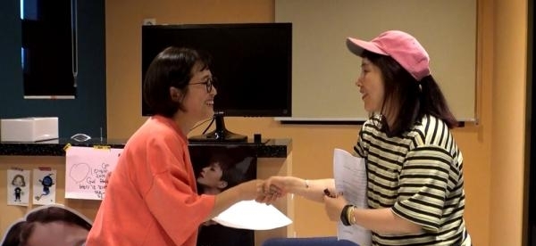공개된 사진 속 송은이와 신봉선의 계약 현장이 담겼다. 계약서를 신중하게 읽어 본 신봉선은 “도장 함부로 찍는 거 아닌데~”라면서 도장을 찍을 듯 말 듯 한 제스처로 ‘계약 밀당’을 펼쳤다고 전해져 폭소를 유발한다.
