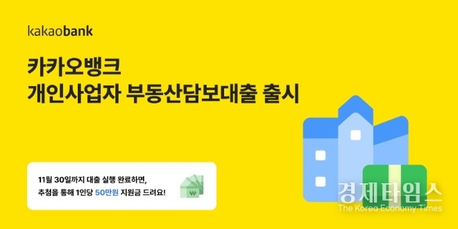 경제타임스 전영진 기자 | 카카오뱅크가 소상공인 고객을 위해 '개인사업자 부동산담보대출'을 선보인다고 21일 밝혔다. 개인사업자 고객이라면 카카오뱅크에서 신용대출, 보증서대출, 부동산담보대출 등 더욱 다양한 상품을 선택할 수 있게 됐다.