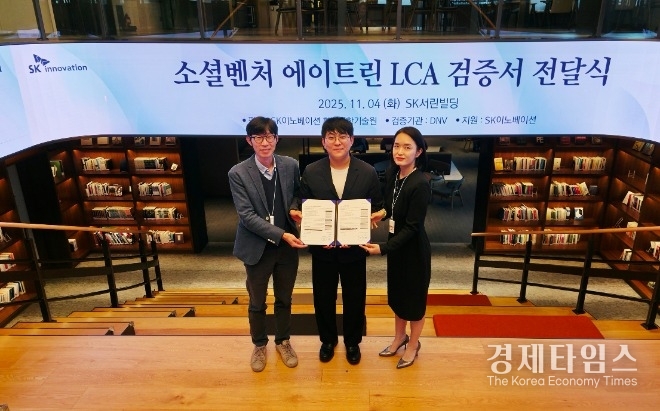 SK이노베이션은 전날 서울 종로구 SK 서린빌딩에서 에이트린의 업사이클 우산에 LCA 검증서를 수여했다.