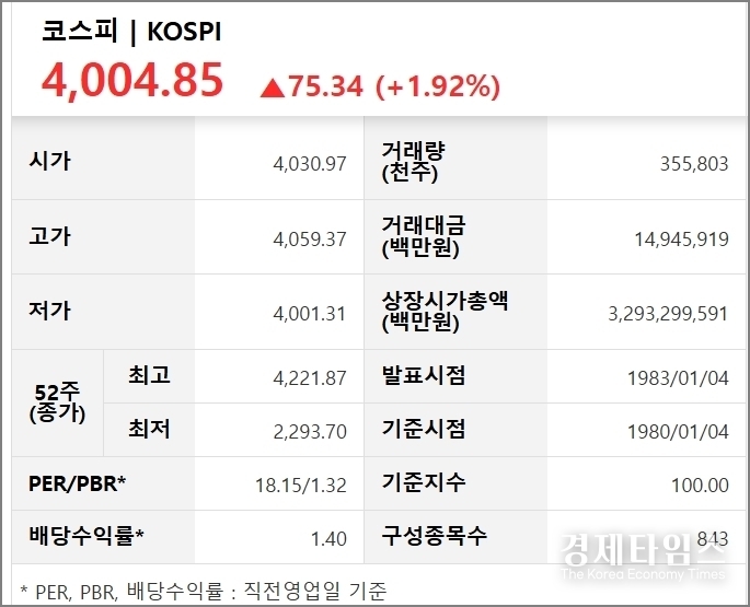 경제타임스 김은국 기자 | 코스피가 엔비디아의 ‘깜짝 실적’과 중국의 ‘한일령(限日令)’ 강화에 따른 반사이익 기대감에 힘입어 4,000선을 회복했다.