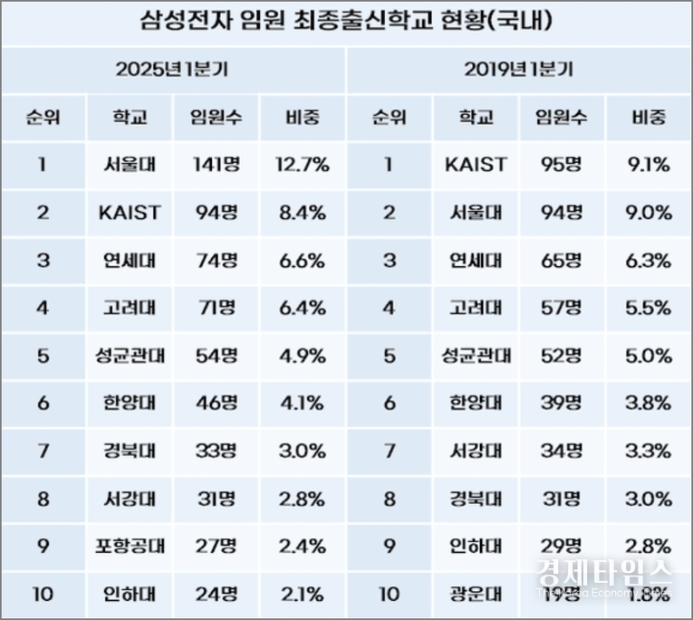 지난해 인사는 글로벌 경제 환경의 불확실성과 경영 위기 대응 능력 제고를 위해 성과주의 원칙 하에 이뤄졌다. 대표적으로 30대 상무, 40대 부사장이 과감하게 발탁됐으며, 차세대 AI·6G·반도체 등 신성장 분야의 기술 인재와 함께 여성·외국인 등 다양한 배경의 리더가 임원진에 합류했다.