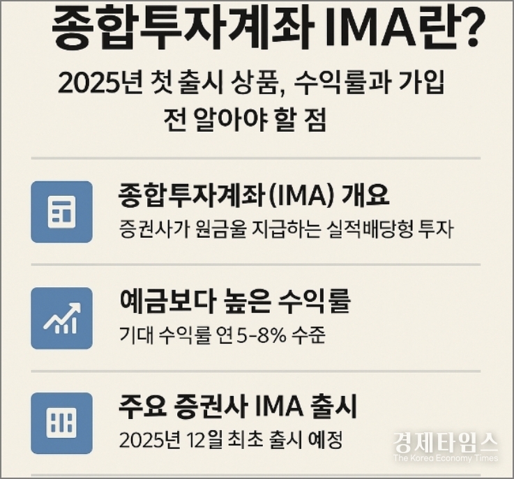 경제타임스 김은국 기자 | 종합금융투자계좌(IMA·Investment Management Account)는 자기자본 8조원 이상 대형 증권사만 운용할 수 있도록 허용된 고급형 통합 투자계좌다. 단순한 주식·채권 거래를 넘어, 고객 예탁금을 기업금융(IB), 대체투자, 부동산·인프라 프로젝트, 파생상품 등 다양한 자산군에 포트폴리오 형태로 일괄 운용할 수 있는 점이 기존 계좌와의 가장 큰 차이다.
