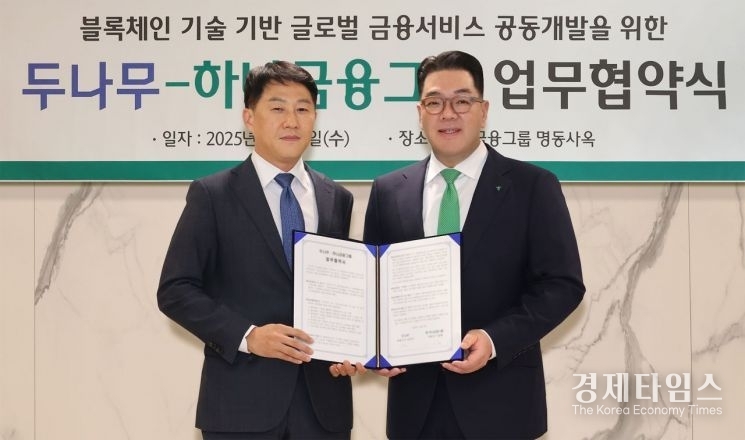 경제타임스 전영진 기자 | 하나금융그룹과 블록체인 전문기업 두나무가 디지털 금융 혁신을 위한 전략적 업무협약(MOU)을 체결했다.
