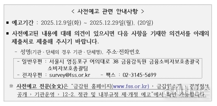 조영범 금감원 소비자보호총괄팀장은 “금융소비자서비스헌장 개정은 금감원 전 임직원이 본연의 소임인 금융소비자보호를 더욱 충실히 완수하기 위한 각오를 새롭게 다지는 계기가 될 것”이라며 “개정안은 사전예고를 거쳐 최종 확정될 것”이라고 말했다.
