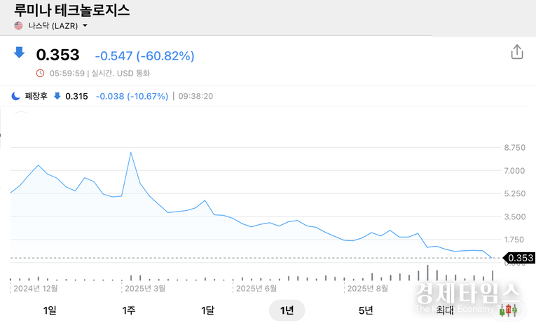 루미나는 최근 자발적으로 챕터11 절차를 개시했다. 이 소식이 전해지자 주가는 하루 만에 60.82% 급락, 1년 전 대비 낙폭은 약 85.2%에 달했다. 회사는 파산 절차 중에도 라이더 하드웨어·소프트웨어 공급과 사업 운영은 유지하겠다는 입장이지만, 사실상 법원 감독 하 매각을 전제로 한 구조조정 국면에 들어갔다는 평가가 나온다.