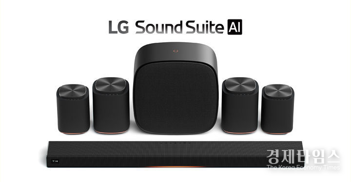 'LG 사운드 스위트'는 사운드바와 무선 서라운드 스피커, 서브우퍼 등으로 이뤄졌으며 인공지능(AI)과 무선통신 기술을 활용해 어떤 공간에서도 최적화된 사운드를 구현할 수 있다.