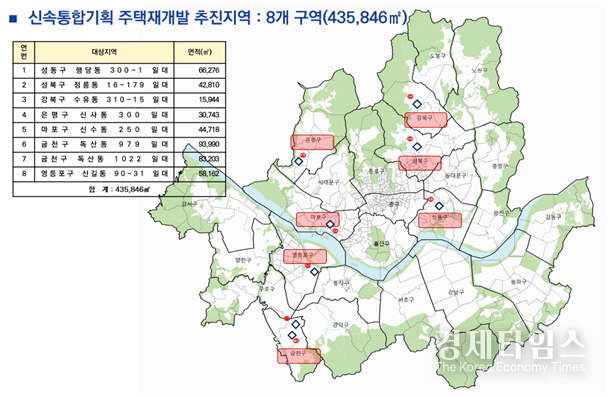 경제타임스 이준오 기자 | 서울시가 신속통합기획 주택재개발 후보지로 선정된 8개 구역을 토지거래허가구역으로 신규 지정해 투기성 토지거래를 원천 차단하는 한편 정비사업의 투명성을 강화한다.