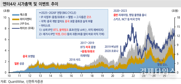 경제타임스 온인주 기자 | 신한투자증권이 2026년을 엔터테인먼트 업종의 ‘가장 바쁜 해’로 지목했다.