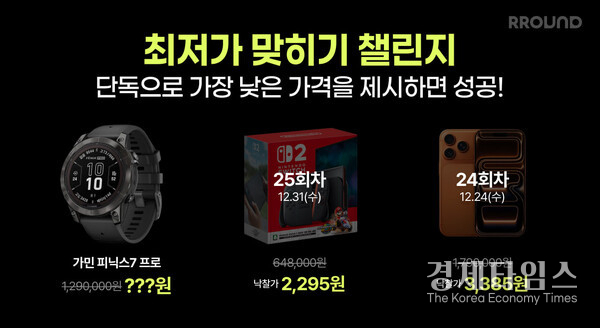 회사에 따르면 ‘최저가 맞히기 챌린지’는 매주 한 개의 상품을 대상으로 일주일간 진행된다. 참가자는 100원 이상 10만원 미만의 금액을 제시하고, 다른 참여자와 겹치지 않는 최저가를 맞히면 해당 가격으로 상품을 구매할 수 있다. 참여는 라운드 앱 내 미션 수행을 통해 획득한 도전권으로 가능하며, 참여 횟수에는 제한이 없다.