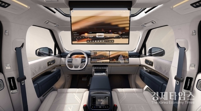 특히 눈길을 끄는 기술은 양사가 공동 개발한 ‘윙 스타일 스크린’이다. 차량 천장에 달린 17형 후석 디스플레이는 내부 레일을 통해 2열과 3열 사이를 최대 88cm까지 이동할 수 있다. 이는 고정형 디스플레이가 뒷좌석에서 잘 보이지 않던 단점을 극복한 것으로, 뒷좌석 탑승객에게 최적의 시청 경험을 제공하기 위한 삼성디스플레이의 기술력이 집약됐다.