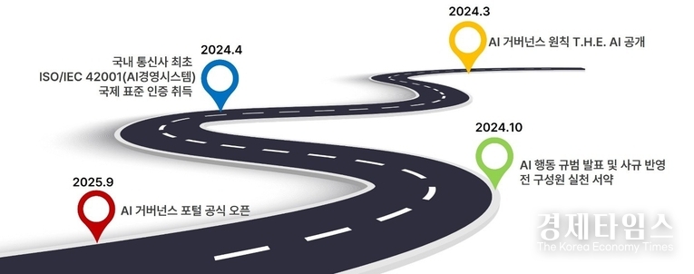 SK텔레콤은 그동안 AI 윤리 경영을 선제적으로 추진해 왔다. 2021년 ‘사람 중심’ 가치를 핵심으로 한 AI 추구 가치를 정립했으며, 2024년 3월에는 SKT만의 AI 거버넌스 원칙인 ‘T.H.E. AI’를 공개했다. 이어 같은 해 4월에는 국내 통신사 최초로 AI 경영시스템 국제 표준인 ISO/IEC 42001 인증을 획득했다.