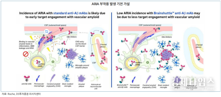 이에 대한 대안으로 로슈(Roche)의 '트론티네맙'과 같은 BBB 셔틀 기술이 부상하고 있다. 트론티네맙은 항체에 셔틀을 장착해 뇌 실질 내 플라크에 효과적으로 결합함으로써 뇌혈관 내 염증 유발을 억제한다. 실제로 임상 3상에서 트론티네맙은 5% 미만의 획기적으로 낮은 ARIA 발생률을 기록하며 안전성을 입증했다. 국내에서는 에이비엘바이오가 IGF1R 이중항체를 활용한 'Grabody-B' 플랫폼으로 임상 1상에서 우수한 안전성을 확인하며, GSK 및 일라이 릴리와 총 수조 원 규모의 기술이전 계약을 체결하는 성과를 냈다.