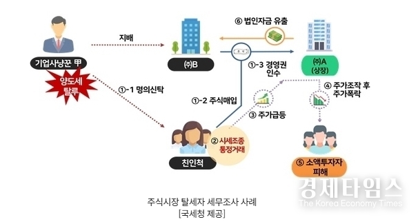 또한 기업사냥꾼 B는 차명으로 상장사를 인수한 뒤 고가 매수와 통정 거래를 통해 시세를 조종, 80억원의 부당이익을 챙겼다. 상장사 사주 C는 자녀에게 경영권을 헐값에 넘기기 위해 인위적으로 주가를 시가의 3분의 1 수준으로 떨어뜨려 증여세를 편법 축소 신고했다가 덜미를 잡혔다.