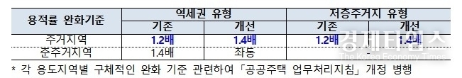 개정안에 따라 기존에는 준주거지역에서만 용적률을 법적 상한의 1.4배까지 올릴 수 있었으나 앞으로는 역세권 내 일반주거지역과 저층 주거지로 이를 확대 적용할 수 있게 됐다. 특례는 3년 한시로 도입하되, 특례 적용 기간 예정지구로 지정된 사업은 3년이 지나도 특례 적용이 지속된다.