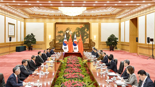 시 주석은 “(한국은)줄곧 긴밀하게 협력해온 친구이자 파트너”라며 “현재 세계 100년 동안 없었던 큰 변곡에 대해 전략적 협력동반자 관계를 심화시키고, 발전시키고, 양국의 공통된 이익을 수호하고 넓혀야 한다”고 덧붙였다.