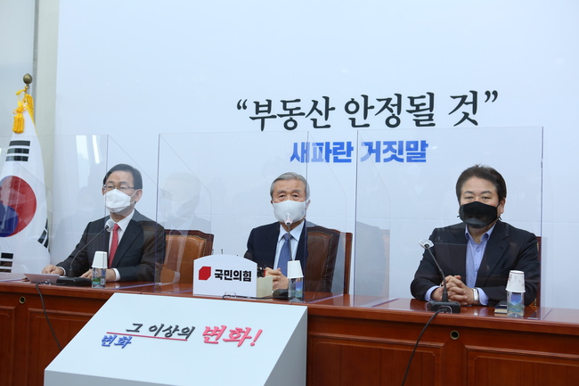 김종인 국민의힘 비상대책위원장이 지난달 25일 국회에서 긴급 기자회견을 열고 발언하고 있다. (사진=김상림 기자)