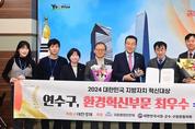 연수구(구청장 이재호)가 승기천을 명품하천으로 재탄생시킨 공로를 인정받아 `2024 대한민국 지방자치 혁신대상`에서 환경혁신부문 최우수상을 받았다. 연수구(구청장 이재호)가 승기천을 명품하천으로 재탄생시킨 공로를 인정받아 `2024 대한민국 지방자치 혁신대상`에서 환경혁신부문 최우수상을 받았다. 대한경제가 주최한 `대한민국 지방자치 혁신대상`은 지방자치 및 지역발전에 탁월한 성과를 거둔 기초지자체에 수여하는 상으로, 연수구는 승기천의 생태환경 개선과 친수기능 강화 그리고 생태문화 공간 창출 등에서 우수한 평가를 받았다. 특히 승기천의 수질개선을 위한 단체장의 의지와 자연 생태하천으로 탈바꿈하기 위한 노력, 그리고 계절별 테마 꽃길, 수변 산책로, 음악회 등 도심 속 가족 친화적 여가 문화공간을 조성한 실적과 성과를 인정받았다. 구는 지난해부터 자연형 생태공간, 주민참여형 친수 문화공간 등 명품하천 조성을 위한 승기천 워터프런트 사업을 추진해 구민들의 호응을 얻고 있다. 또 승기천 일대에 물길 복원과 붕괴한 호안 정비, 퇴적물 제거 등으로 하천 흐름을 되살려 수질을 개선했고 상시 퇴적으로 악취가 많이 발생하는 곳에는 차집찬넬 개선 공사를 완료했다. 추가로 승기