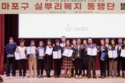 마포구(구청장 박강수)는 지난 11월 6일 오후 마포구청 대강당에서 `실뿌리복지 동행단` 발대식을 열고 800여 명의 단원을 위촉했다. `이웃이 전하는 따뜻한 온기` 마포구 실뿌리복지 동행단 힘차게 출발 `실뿌리복지`는 아이부터 어른까지, 사회적 약자부터 일반 주민까지 구민 모두의 삶에 스며드는 촘촘한 복지를 지향하는 마포구 복지 비전이다. 이번 발대식에는 실뿌리복지 동행단으로 활동할 16개 동 주민과 각 동 동장 등이 참석해 자리를 빛냈다. 이날 박강수 마포구청장은 각 동 실뿌리복지 동행단장에게 위촉장을 수여하고 단장 대표와 선서로 실뿌리복지 구현을 위한 굳은 의지를 다졌다. 이후 나우리가족상담소 소장 이서원 교수가 `가족 구조 변화에 따른 이웃 돌봄`이라는 주제로 강연을 펼치며 동행단에게 실뿌리복지의 중요성을 알렸다. 동행단은 마포구 실뿌리복지사업 정보를 공유하면서 복지 사각지대에 놓인 주민을 발굴하고, 늘어나는 1인 가구의 고독사를 예방하는 사업과 지역적 특성을 반영한 실뿌리복지 특화사업 등을 추진할 예정이다. 박강수 마포구청장은 "동행단 여러분께서 우리 주변 어려운 이웃의 손을 맞잡아 주시는 든든한 동반자가 돼주시길 바란다"라며 &q