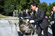 오세훈 서울시장은 26일 오전 11시 국립서울현충원(동작구 현충로 210)에서 열린 ‘박정희 대통령 서거 제45주기 추도식’에 참석해 헌화했다. 오세훈 서울시장이 26일(토) 국립서울현충원에서 열린 `박정희 대통령 서거 제45주기 추도식`에 참석해 묘역에 헌화하고 있다. 1980년부터 매년 개최되어 온 ‘박정희 대통령 추도식’은 이날 정재호 추도위원장이자 전 국회의원 등 3백여 명이 참석한 가운데 1시간 동안 진행됐다. 오 시장은 헌화를 마친 뒤 묘역 입구에 마련된 방명록에 ‘국가번영의 유지를 받들어 더 밝은 미래를 만들어 가겠습니다’라고 추도글을 남겼다.
