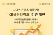 경제타임스 전영진 기자 | KB국민은행은 시니어 고객을 위한 종합 콘텐츠 웹플랫폼 ‘KB골든라이프’를 새롭게 개편했다고 21일 밝혔다. KB국민은행은 기존 ‘KB골든라이프X’를 ‘KB골든라이프’로 리브랜딩해 상속·증여·절세·연금·부동산 등 금융 정보와 문화·생활·건강 등 비금융 콘텐츠를 아우르는 종합 시니어 플랫폼으로 강화했다. 또한 홈페이지 내 화상상담 서비스와 ‘KB골든라이프센터’ 예약 기능을 연계하는 등 온·오프라인 시니어 케어 서비스를 확대했다. 특히 KB라이프생명의 ‘KB요양돌봄컨설팅’’를 비롯해 시니어의 관심이 높은 비금융 서비스를 포함한 각 계열사의 시니어 특화 콘텐츠를 통합 제공, 금융 접근성과 이용 편의성을 높였다. 아울러, 시니어 고객 맞춤형 금융·비금융 콘텐츠를 확대하고 UI/UX를 단순하고 직관적인 메뉴로 개편해 가독성과 접근성을 높였다. 또한 KB금융그룹의 전문가들의 노하우를 바탕으로 한 금융칼럼과 빅데이터를 기반으로 한 ‘골든라이프 뉴스레터’를 정기적으로 발행해 시니어 고객들에게 실질적인 생활 가이드와 금융 인사이트를 동시에 제공할 예정이다. KB국민은행 관계자는 “이번 KB골든라이프의 개편으로 금융과 생활의 경계를 넘어 다양한 서비