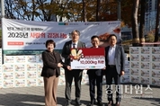 경제타임스 전영진 기자 | 현대백화점그룹 계열 종합식품기업 현대그린푸드가 지난 18일 용인시수지노인복지관과 함께 '사랑의 김장 나눔 행사'를 진행했다. 20일 현대백화점에 따르면 이날 행사에 현대그린푸드, 용인시수지노인복지관 관계자들과 함께 이영민 수지구청장, 지미연 경기도의회 의원이 참석했다. 현대그린푸드는 이번 행사를 통해 용인시수지노인복지관에 김장김치 10톤을 기증했다. 기증된 김치는 용인시수지노인복지관를 비롯해 수지구 내 행정복지센터, 돌봄 유관기관 등 취약계층 1000여 가구에 전달될 예정이다. 사랑의 김장 나눔 행사는 현대그린푸드가 지난 2012년부터 14년간 매년 진행한 사회공헌 활동으로, 올해까지 누적 3만9000포기, 총 100톤 김치를 취약계층을 위해 지원한 바 있다. 현대그린푸드 관계자는 “따뜻한 지역사회를 만들기 위해 나눔을 실천해 김장 나눔 행사를 진행했다”며, “지역 사회 일원으로 주민들이 건강하고 행복한 삶을 누릴 수 있도록 다양한 지원 활동을 하겠다”고 설명했다.