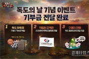 경제타임스 김은국 기자 | NHN이 ‘독도의 날(10월25일)’을 맞아 모바일 게임 ‘한게임 섯다&맞고’의 기부 이벤트 수익금 1천만원을 사단법인 대한민국독도협회에 전달했다고 10월21일 밝혔다. 이번 기부는 이용자들의 참여형 캠페인으로 마련됐다. NHN은 게임 내 독도 기부 상품이 결제될 때마다 결제금액의 10%를 적립했으며, 여기에 회사가 추가 기부금을 더해 총 1천만원의 기부금을 조성했다. 해당 기부금은 독도의 중요성을 알리고 보전 의식을 확산하기 위한 교육 자료 구축 및 홍보 콘텐츠 제작 사업 등에 사용될 예정이다. 이번 행사는 NHN이 운영하는 대표 모바일 웹보드 게임 ‘한게임 섯다&맞고’ 내에서 진행된 ‘독도의 날 기부 이벤트’로, 이용자들이 즐겁게 플레이하면서 자연스럽게 사회공헌에 참여할 수 있도록 기획됐다. NHN 모바일웹보드사업그룹장 최영두는 “이벤트를 통해 함께하는 나눔의 가치를 공유할 수 있었다”며 “앞으로도 게임 플레이만으로도 기부에 동참할 수 있는 다양한 참여형 사회공헌 프로그램을 선보이겠다”고 말했다. NHN은 이번 기부 외에도 게임 콘텐츠를 활용한 사회공헌 활동을 지속적으로 이어가고 있다. 특히 ‘한게임’ 브랜드를 중